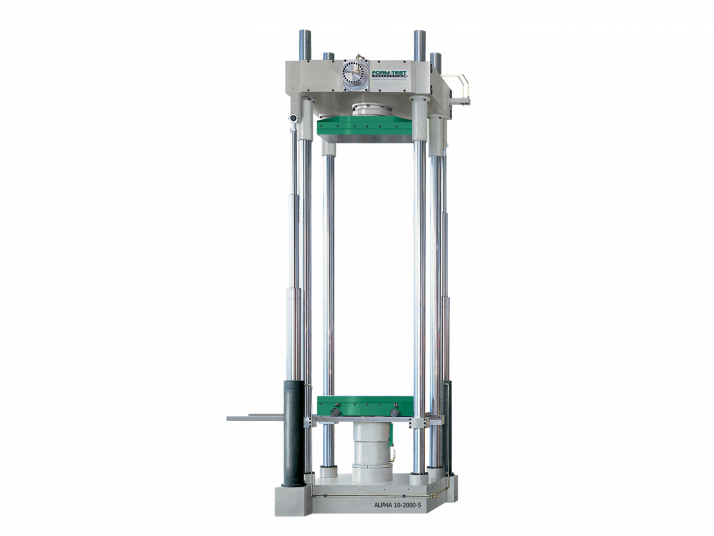 Kifejezetten nagyméretű mintákhoz tervezve, mivel a hidraulikusan állítható felső keresztfejjel a magasság könnyen beállítható. Építőanyagok próbatestjeinek nyomóvizsgálatához: