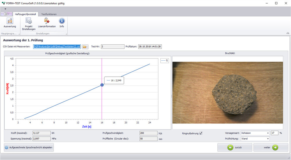 Tapadásvizsgáló készülékeinkhez saját, modern és egyszerű szoftvert fejlesztettünk ki, amely egy végső jelentésben összefoglalja az összes releváns vizsgálatot.